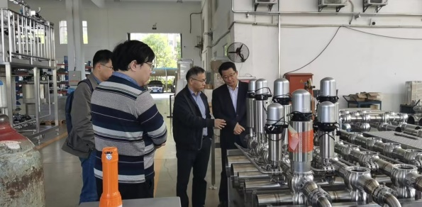 陳總首先帶領(lǐng)劉校長一行人參觀了公司裝備制造中心,并就裝備制造中心的的職能定位、未來發(fā)展、以及現(xiàn)場制造的流體項目單元模塊、部分非標裝備、集中控制系統(tǒng)等進行了介紹。